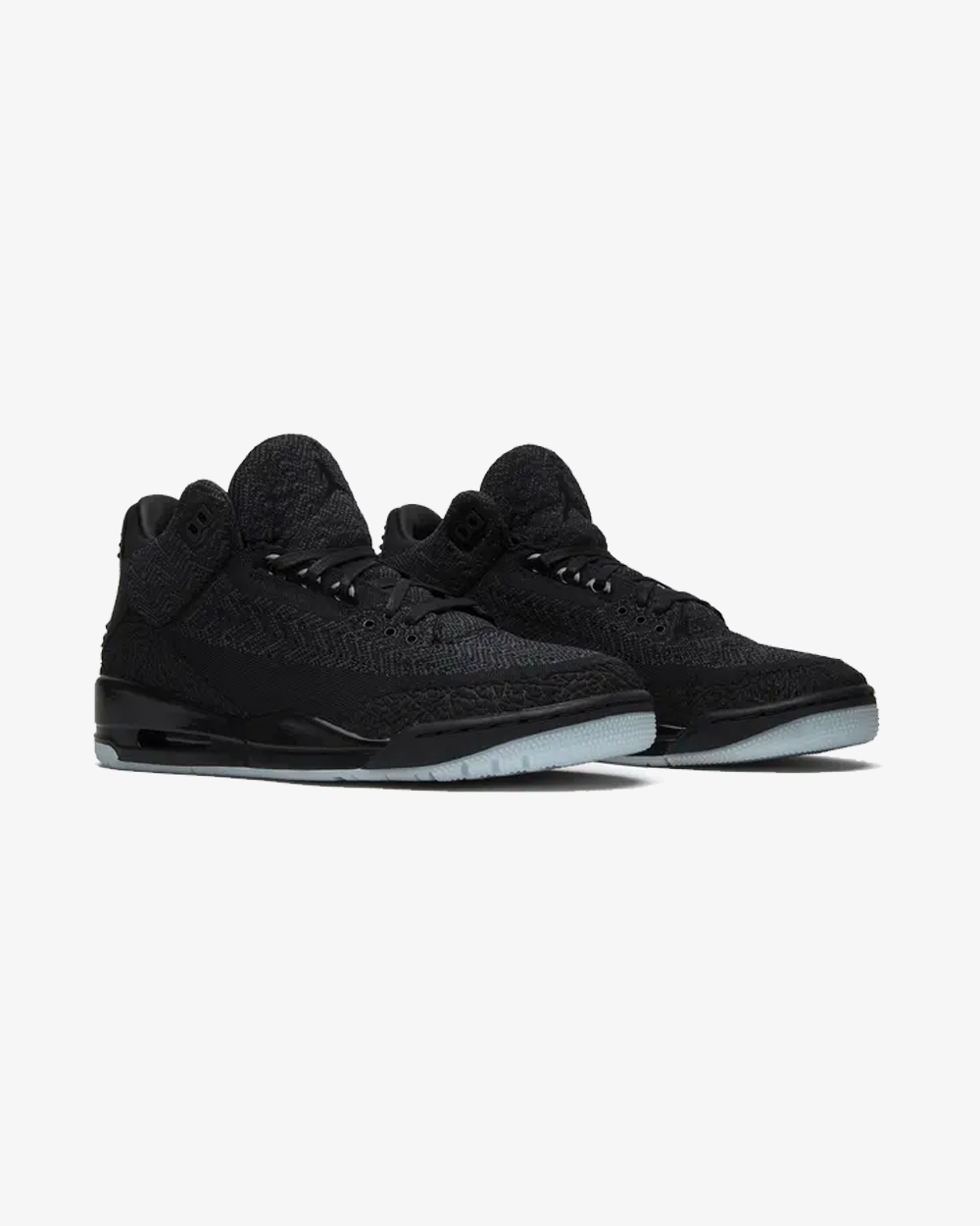 The traditional leather upper is replaced by an all-black Flyknit construction, engineered with sculpted textures that mimic the AJ3’s iconic elephant print. The result is a refined blend of heritage design and cutting-edge technology, offering a streamlined fit without sacrificing the sneaker’s unmistakable identity.